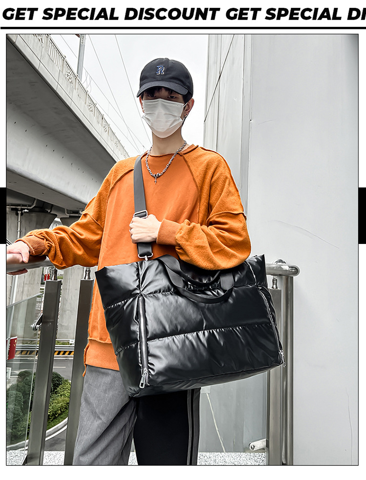Als Reisetasche sieht diese faltbare Tasche nicht nur schick aus, sondern ist auch äußerst praktisch. Die Innenstruktur ist mit mehreren Fächern sinnvoll gestaltet, sodass Kleidung, Toilettenartikel oder elektronische Geräte ordentlich verstaut werden können. Während der Reise finden Sie schnell, was Sie brauchen, und müssen sich nicht mehr um kompliziertes Gepäck kümmern. Die Wahl einer wasserdichten Reisetasche kann Ihre Reise sicherer machen. Diese Tasche ist aus wasserdichtem Material gefertigt, sodass die Gegenstände im Inneren trocken bleiben, egal ob es regnet oder eine feuchte Umgebung ist. Dieses Design eignet sich besonders für moderne Menschen, die gerne im Freien sind oder häufig auf Geschäftsreisen sind, und schützt Ihre Sachen effektiv.