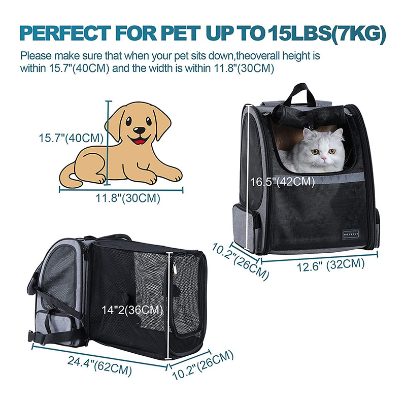 Ονομα προϊόντος | Μεταφορέας σακιδίων πλάτης γάτας Επεκτάσιμες τσάντες πλάτης για σκύλους με εξαιρετικό αεριζόμενο στρώμα φλις και φορητό σακίδιο ταξιδιού για κατοικίδια |