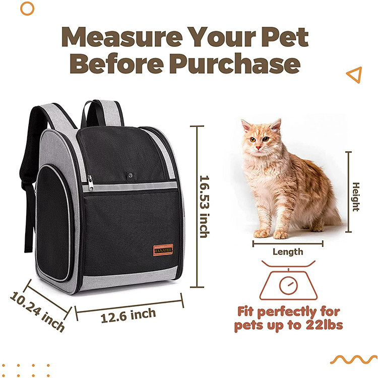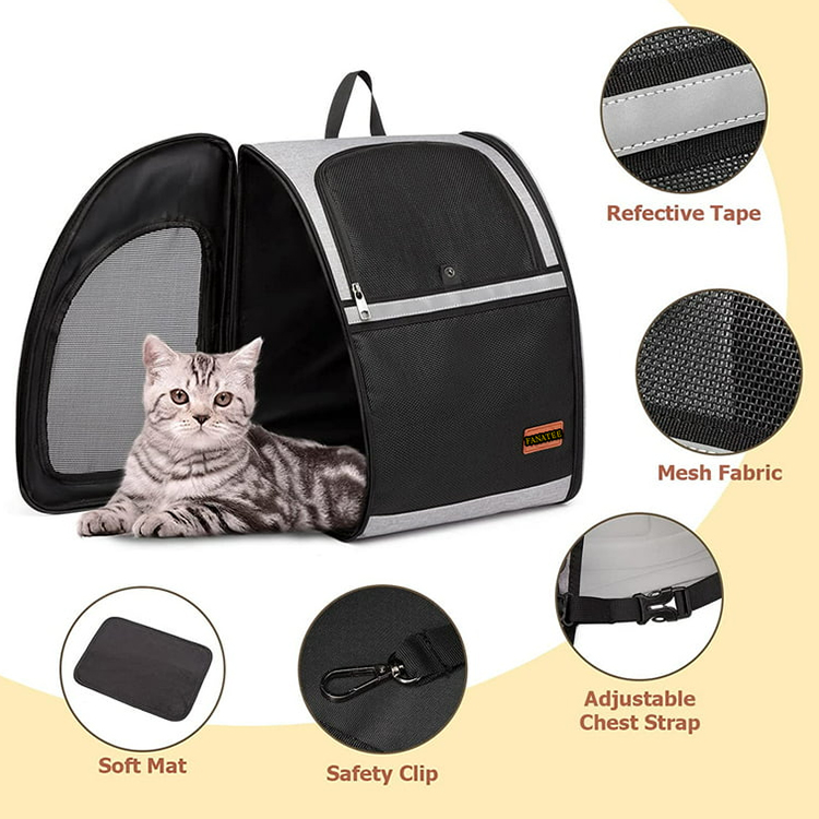 Ανθεκτικό και αναπνεύσιμο: Κάθε σακίδιο πλάτης γάτας με μαλακή όψη είναι κατασκευασμένο από υψηλής αντοχής φιλικό προς το περιβάλλον ύφασμα διχτυού και αδιάβροχο κατιονικό ύφασμα oxford. Η εξαιρετική αντοχή στο σχίσιμο και η αντοχή στην τριβή το καθιστούν δυνατό και ανθεκτικό. Και είναι με πλέγμα τριών όψεων , η πλήρης ροή αέρα εξασφαλίζει αερισμό και οπτική ικανότητα, αφήστε τα κατοικίδια σας να το απολαύσουν μέσα για να ταξιδέψουν για μικρό ή μεγάλο χρονικό διάστημα.