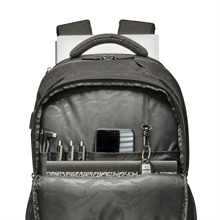 Το σακίδιο πλάτης Laptop Huafang (18" x 13" x 7") είναι ιδανικό για μετακινούμενους και ταξιδιώτες, μαύρο χρώμα. Το εξωτερικό θερμαινόμενο γκρι υλικό είναι κατασκευασμένο από ανακυκλωμένα μπουκάλια PET, παρέχοντας μια βιώσιμη επιλογή για να μεταφέρετε τα υπάρχοντά σας. Μείνετε προστατευμένοι στο δρόμο : Η αντιμικροβιακή επίστρωση, κατασκευασμένη από Microban, βοηθά στην πρόληψη της ανάπτυξης βακτηρίων. Μπορείτε εύκολα να σκουπίσετε την επιφάνεια με ένα υγρό πανί για να την καθαρίσετε. Αυτό το σακίδιο είναι πλούσιο σε χαρακτηριστικά με φιλικό σχεδιασμό στο σημείο ελέγχου, που σας επιτρέπει να περάσετε εύκολα από την ασφάλεια του αεροδρομίου . Επαναφορτίστε το τηλέφωνό σας ή άλλα ηλεκτρονικά είδη με την εξωτερική θύρα USB. Έρχεται ακόμη και με θύρα ακουστικών, ώστε να μπορείτε να τροφοδοτείτε τα καλώδιά σας μέσω του σακιδίου για μια εμπειρία hands-free. Κουραστήκατε να μεταφέρετε το σακίδιό σας; Ο εξωτερικός ιμάντας πλάτης γλιστράει πάνω από τις περισσότερες αποσκευές λαβές για να μπορείτε να ταξιδεύετε με ευκολία.