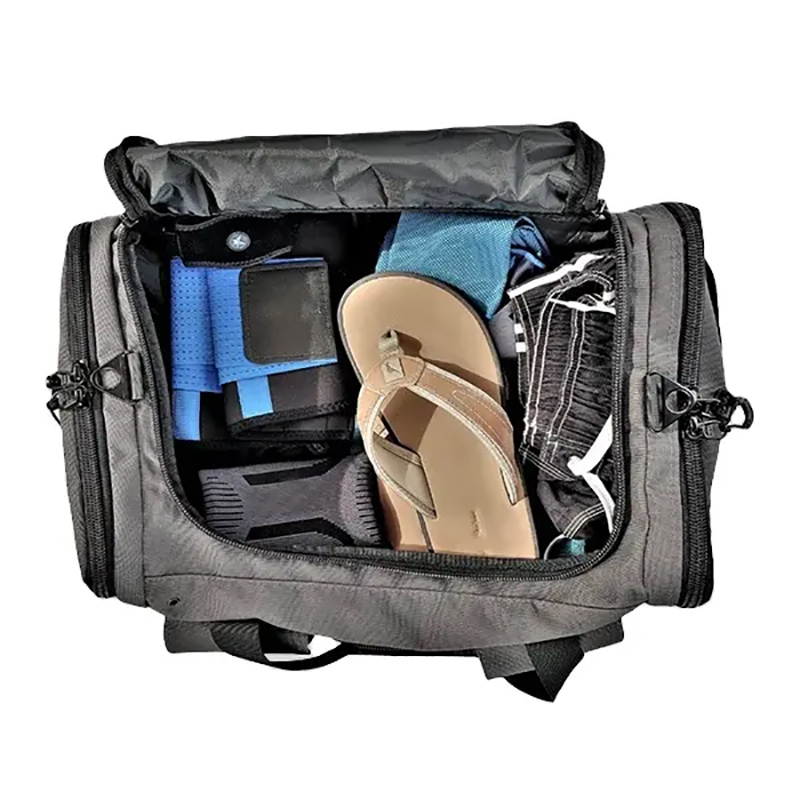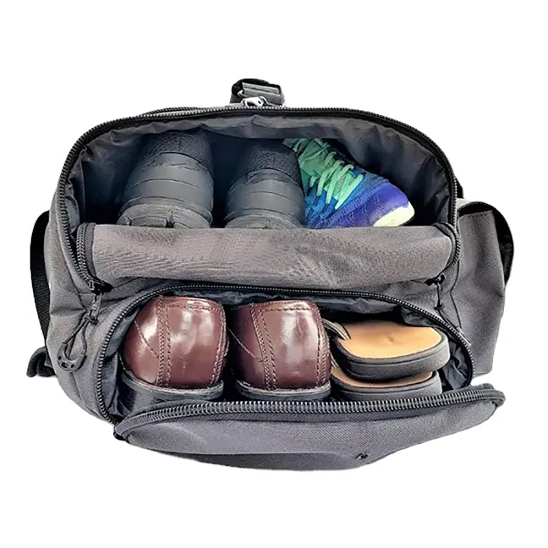 Επιπλέον, η τσάντα μας για γυμναστήριο περιλαμβάνει δύο θήκες για παπούτσια, διασφαλίζοντας ότι τα παπούτσια σας αποθηκεύονται με ασφάλεια και χωρίζονται από τον υπόλοιπο εξοπλισμό σας. Αυτή η λειτουργία είναι ιδιαίτερα χρήσιμη για όσους ασχολούνται με διάφορες δραστηριότητες, καθώς σας επιτρέπει να μεταβείτε εύκολα από το γυμναστήριο σε άλλες δραστηριότητες που δεν σχετίζονται με τη φυσική κατάσταση.