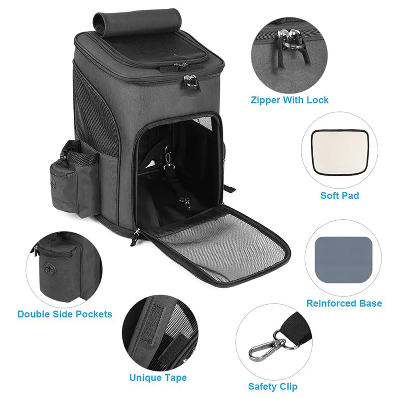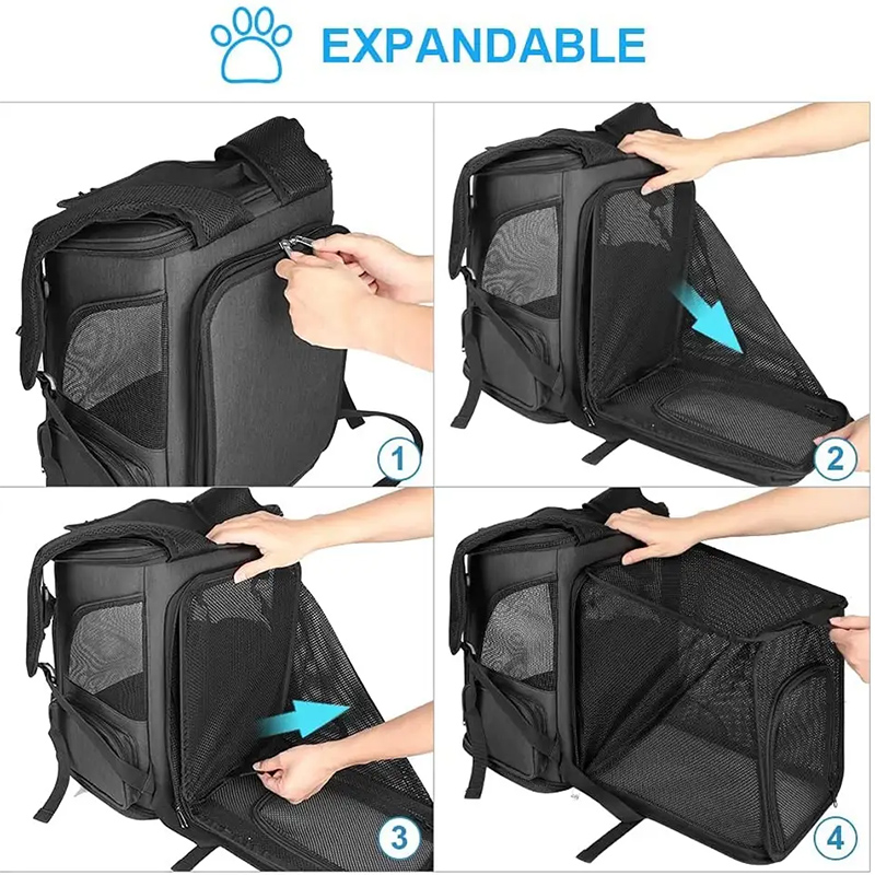 [Επεκτάσιμο& Πτυσσόμενος] Το σακίδιο πλάτης για κατοικίδια με μεγάλη επεκτεινόμενη πλάτη δίνει στο κατοικίδιο σας περισσότερο χώρο για να κινηθεί και μειώνει αποτελεσματικά το άγχος του όταν δεν θέλετε να περπατήσει πουθενά. Ο πτυσσόμενος σχεδιασμός σας βοηθά να εξοικονομήσετε χώρο όταν δεν το χρησιμοποιείτε