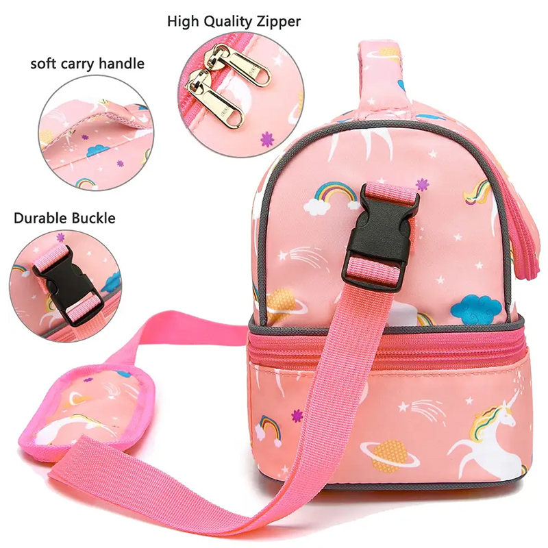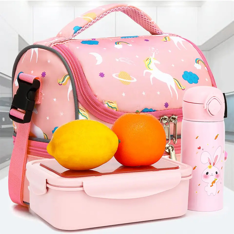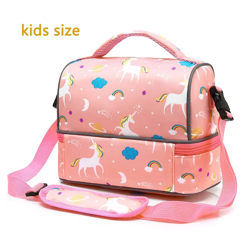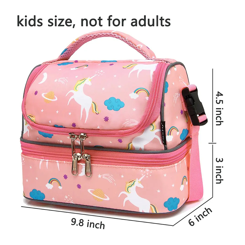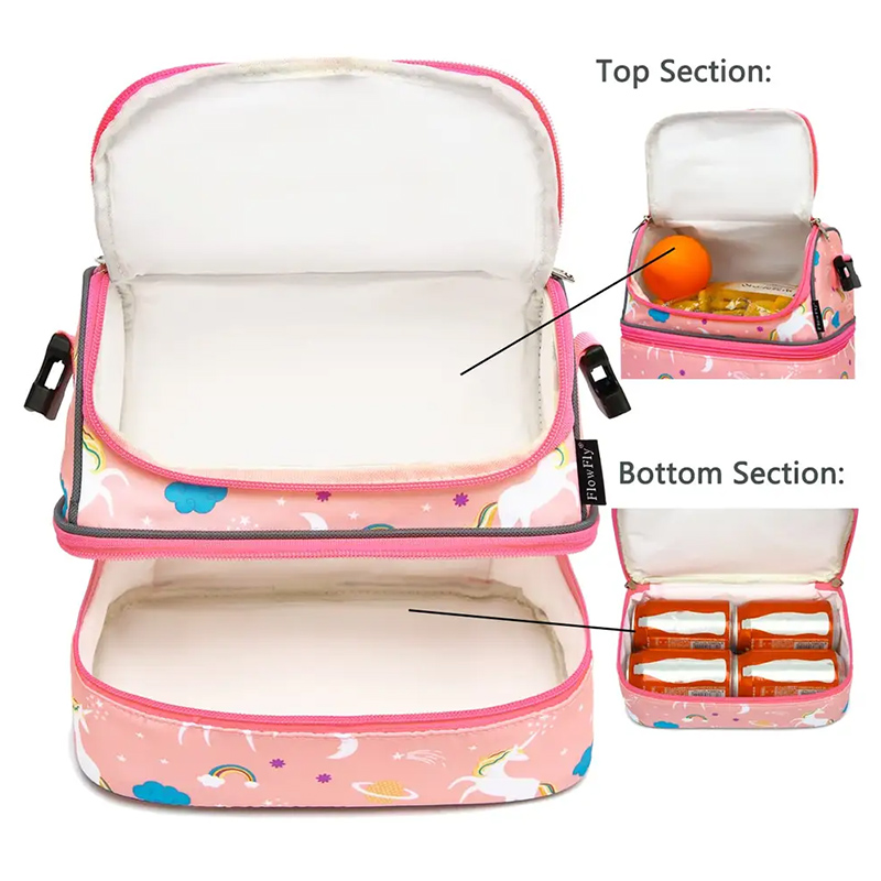 Με τη σχεδίαση διπλού στρώματος και το μικρό μέγεθος, αυτή η τσάντα είναι ιδανική για παιδιά. Η επάνω θήκη είναι ιδανική για την αποθήκευση φρούτων, πατατών, σνακ και ποτών, ενώ η κάτω ορθογώνια θήκη παρέχει άφθονο χώρο για τα αγαπημένα σας γεύματα, ντελικατέσεν και μεσημεριανές λιχουδιές. Γεμίστε τα ευρύχωρα διαμερίσματα με κουτιά μεσημεριανού γεύματος, δοχεία για σάντουιτς, καρυκεύματα, μπολ με φρουτοσαλάτες και πολλά άλλα.