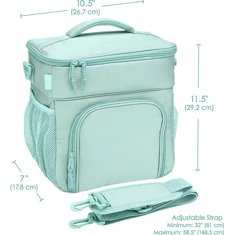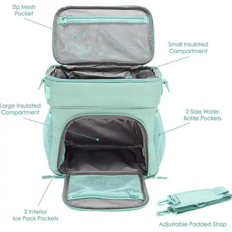 Κατασκευασμένο από πολυεστέρα, υψηλής ποιότητας, αδιάβροχο ύφασμα έρχεται με στεγανή θερμομόνωση για να διατηρεί το φαγητό ζεστό ή κρύο (με παγοκύστη) για έως και 8 Ο χώρος πολλαπλών στρώσεων μπορεί να είναι βολικός για την αποθήκευση διαφορετικών αντικειμένων, η κύρια θήκη μπορεί να βάλει μερικά ποτά, ο μικρός χώρος μπορεί να βάλει μερικά επιτραπέζια σκεύη