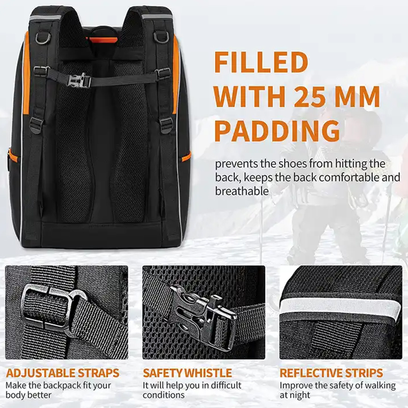 1.Μεγάλη χωρητικότητα: Το μέγεθος είναι 15,7 x 15 x 20,5 ίντσες, με χωρητικότητα αποθήκευσης 65 λίτρων. Αυτή η εξαιρετικά μεγάλης χωρητικότητας τσάντα για μπότες σκι είναι μια εξαιρετική επιλογή για να μεταφέρετε όλο τον εξοπλισμό σας, παρέχοντας άφθονο χώρο για τις μπότες του σκι, τα ρούχα, το κράνος, τα γάντια, το μπουκάλι νερού κ.λπ. Μόνο ένα σακίδιο καλύπτει όλες τις ανάγκες αποθήκευσης κατά τη διάρκεια του ταξιδιού σας.