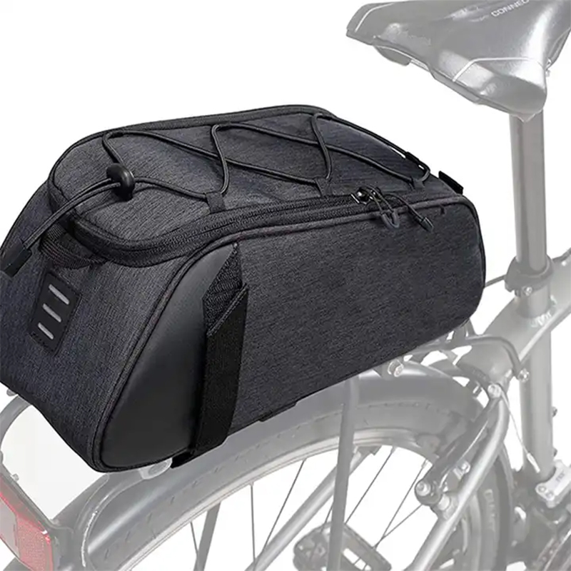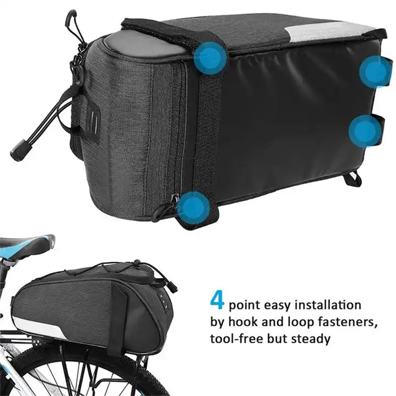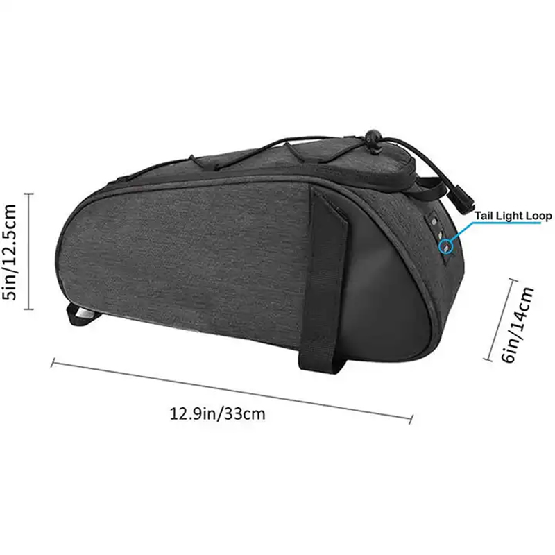 Η τσάντα αποθήκευσης κορμού ποδηλάτου είναι κατασκευασμένη από ύφασμα πολυεστέρα 600D, το οποίο είναι αδιάβροχο και ανθεκτικό στην τριβή και η χωρητικότητα 7 λίτρων είναι αρκετή για να αποθηκεύσει τα περισσότερα από τα αντικείμενα που χρειάζεστε εν κινήσει. Όταν φτάσετε στον προορισμό σας, μπορείτε επίσης να το χρησιμοποιήσετε ως τσάντα χιαστί για ταξίδια και ψώνια.