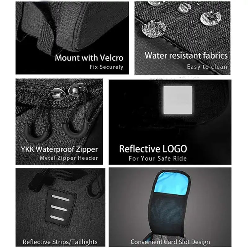 5. Εξανθρωπισμένος σχεδιασμός: Οι αντανακλαστικές ταινίες ενισχύουν την ορατότητα στο σκοτάδι, είναι πιο ασφαλείς όταν οδηγείτε τη νύχτα. Σχεδιασμός ιμάντα Velcro για γρήγορη απελευθέρωση και εγκατάσταση. Είναι η απαραίτητη τσάντα για σύντομο ταξίδι με ποδήλατο