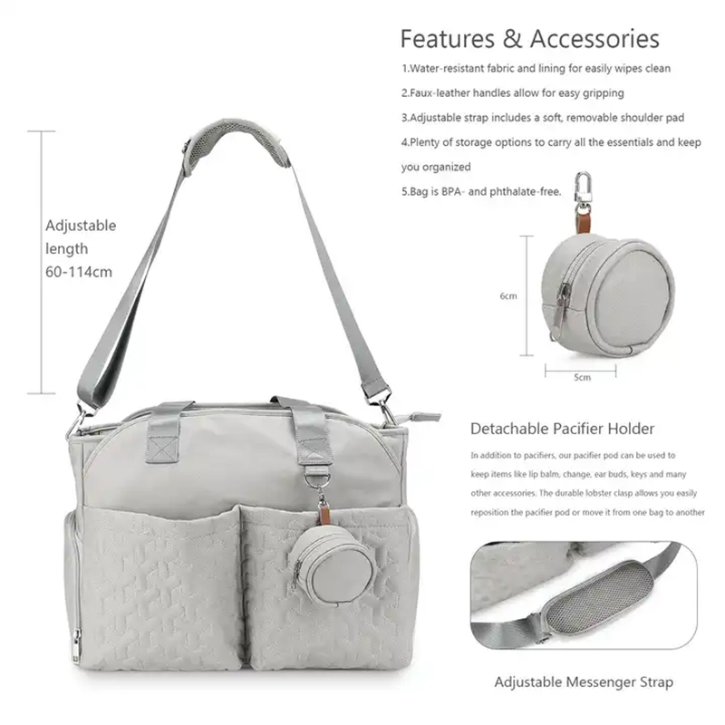 1. Μεγάλη χωρητικότητα-Εύκολη αποθήκευση των προμηθειών για μωρά, φιλική προς το χρήστη δομή τσάντα, σχεδιασμός λειτουργίας αποθήκης σε στρώσεις, πιο οικείο
