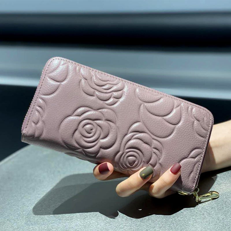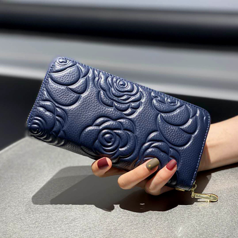 Αυτό το κομψό μακρύ πορτοφόλι με ανάγλυφο λουλούδι συνδυάζει το εκλεπτυσμένο στυλ με την καθημερινή λειτουργικότητα. Κατασκευασμένο από premium δέρμα Cowhide, διαθέτει ένα λεπτό ανάγλυφο λουλουδάτο μοτίβο, δίνοντάς του μια πολυτελή και καλλιτεχνική πινελιά. Σχεδιασμένο τόσο για μόδα όσο και για πρακτικότητα, προσφέρει άφθονο χώρο αποθήκευσης διατηρώντας παράλληλα μια κομψή και εκλεπτυσμένη σιλουέτα.