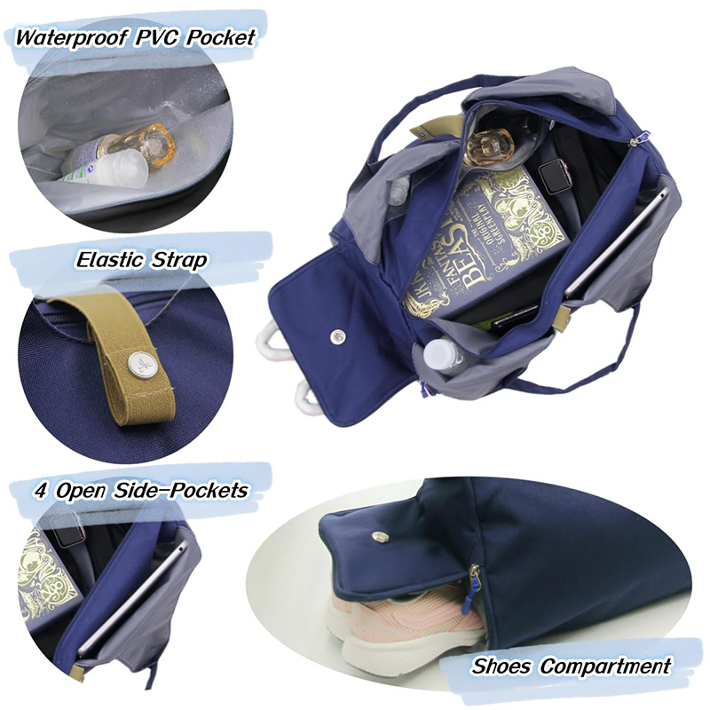 ● Σχεδιασμός με τσέπες για παπούτσια και πλαϊνά: 1 ενσωματωμένη θήκη για παπούτσια στη μία πλευρά, 4 ανοιχτές τσέπες έξω από την κύρια θήκη που έχουν σχεδιαστεί για μπουκάλια νερού, ομπρέλες και άλλα αξεσουάρ γυμναστικής.