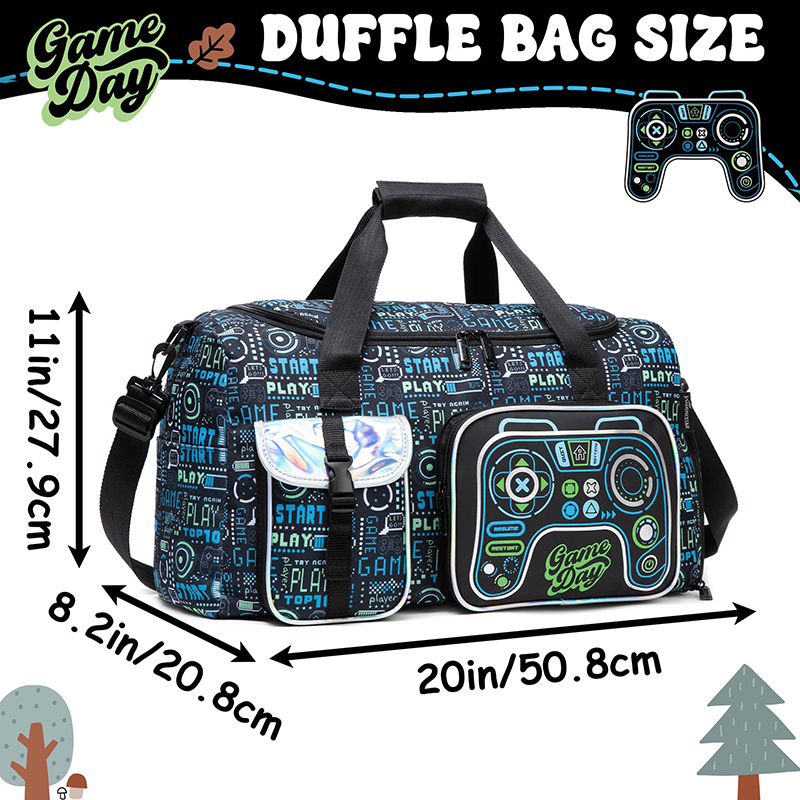 [Kids Duffel Bag Size] Μετράει περίπου 20"x11"x8,2", ευρύχωρη τσέπη παπουτσιών, βοηθά στην προστασία των αντικειμένων σας να παραμένουν ξεχωριστά και καθαρά. Αυτή η τσάντα duffel διαθέτει λουράκια χειρολαβής, ρυθμιζόμενο ιμάντα ώμου και 2 μπροστινές φορητές τσέπες για να αποθηκεύετε οτιδήποτε χρειάζεστε γρήγορη πρόσβαση.