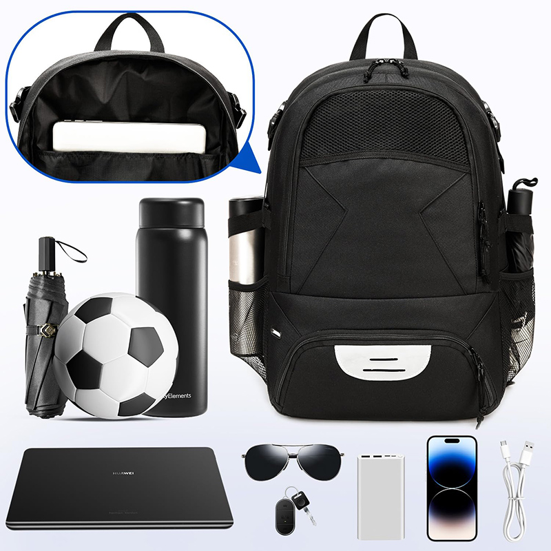 Πολλαπλές τσέπες: Εκτός από τα παπούτσια και τη θήκη της μπάλας, υπάρχουν και άλλες τσέπες για να οργανώσετε καλά τα υπάρχοντά σας. 2* δικτυωτή τσέπη στο πλάι για μπουκάλι, Στο εσωτερικό της κύριας θήκης έχει θήκη αποθήκευσης laptop & iPad.