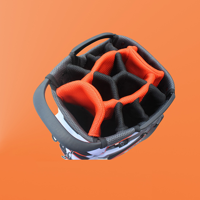 Kun pezo de 1900g, la sako atingas la perfektan ekvilibron inter forto kaj portebleco. La vasta ĉefa fako tenas viajn necesaĵojn - golfpilkojn, gantojn, vestaĵojn kaj pli - dum multaj poŝoj tenas ĉion organizita. Plifortigitaj teniloj kaj alĝustigebla ŝultrobendo faciligas ĝian portadon, ĉu vi promenas sur la golfejo aŭ iras al la klubejo.