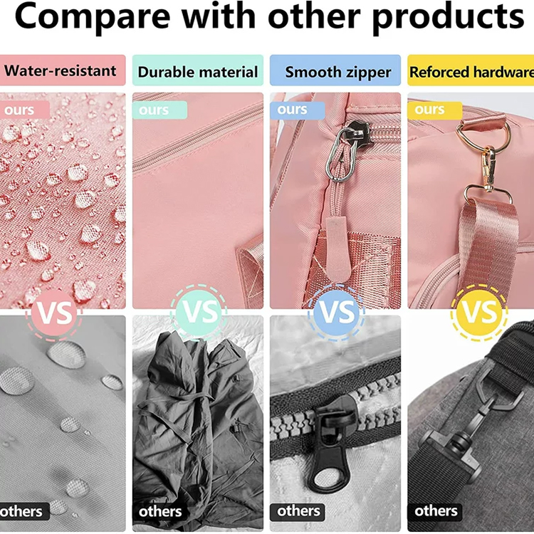 Multfunkcia: Niaj sakoj bone taŭgas por porti ĉiujn viajn personajn aĵojn. Uzu ĝin kiel porti pakaĵon, vojaĝsakon, gimnastikan sakon, lernejan sakon, sportan sakon, dumnoktan sakon aŭ semajnfinan sakon, vi povas konveni vian tutan ilaron en unu loko.
