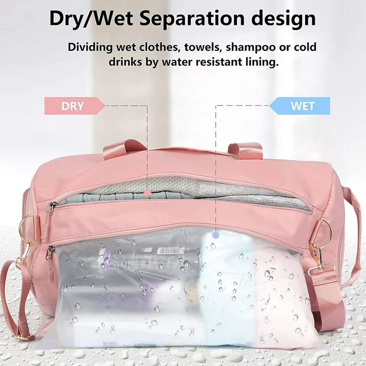 SEKA MALPEKA DISPARITA DESEGNO: La alta denseca akvorezista poŝo povas helpi vin dividi malsekajn vestaĵojn, mantukojn, ŝampuon aŭ malvarmajn trinkaĵojn.