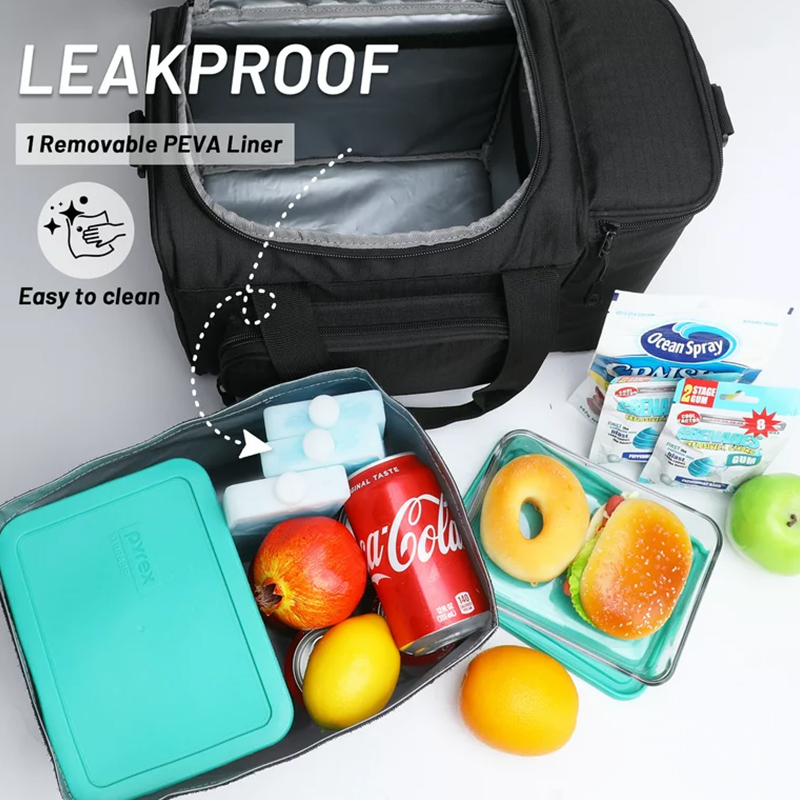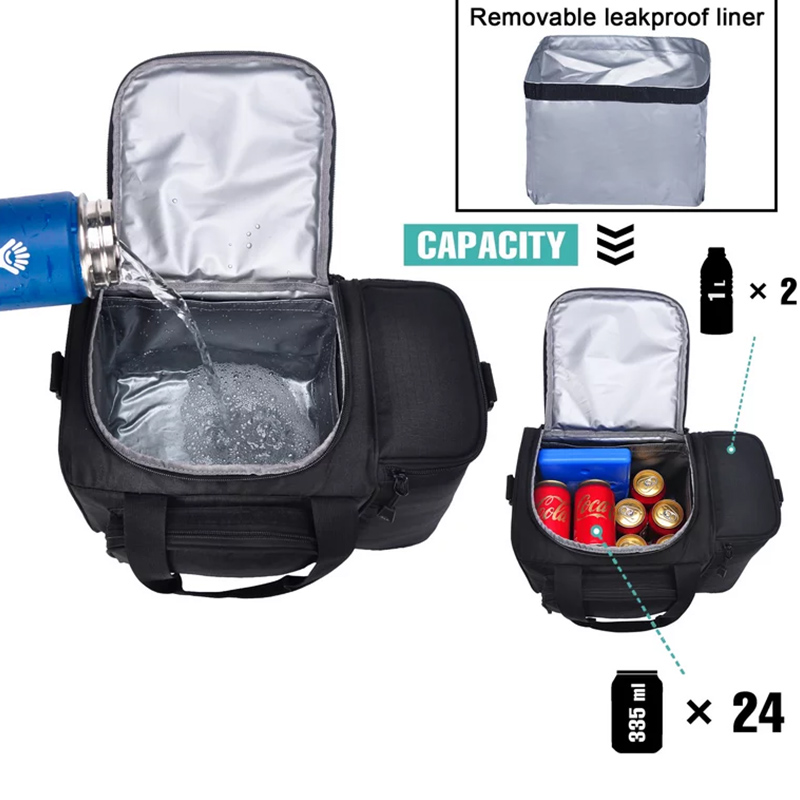 Akvorezistaj Malvarmaj Sakoj ---- La pli malvarmeta tote havas 1 forpreneblan sen-likan izolitan PEVA-tegaĵon kun Varme-veldaj kudroj por malhelpi flekseblajn tegaĵojn en la ĉefa kupeo; Bonvolu noti, ke la flanka kupeo estas "seka" kupeo, kiu ankaŭ estas izolita kaj akvorezista sed ne lika; Facila purigi.