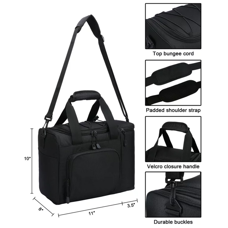 Huafang Cooler Bag havas 2 izolitaj kupeoj ofertas sufiĉan spacon por konservi manĝaĵojn varma aŭ malvarma disigita, dika izolado estas parigita kun fortika, peza konstruo.
