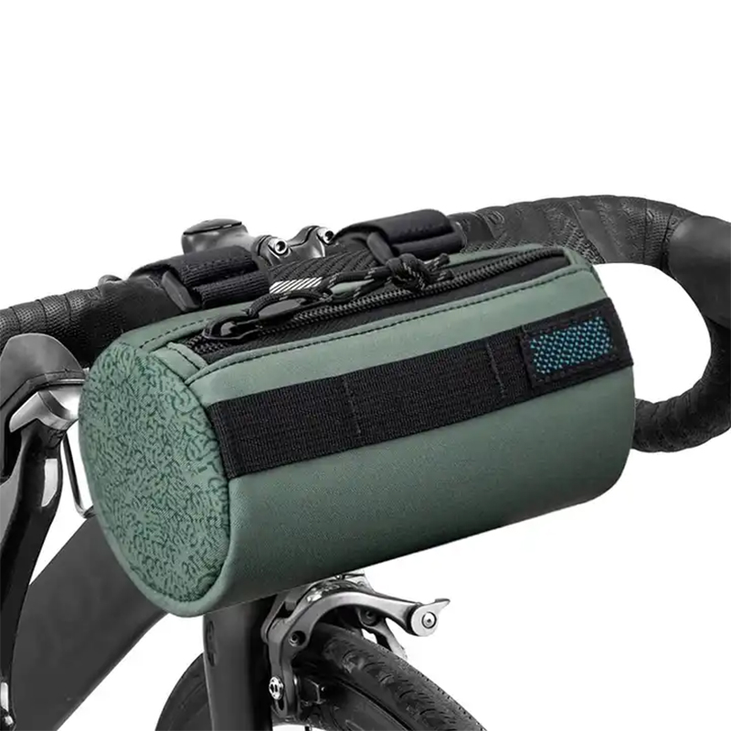 Kompakta bicikla sako farita el 600D PVC + 210D poliestera tegaĵo, la rondeta dezajno ankaŭ estas tre unika kaj ankaŭ povas esti metita tre firme sur la antaŭan stirilon pozicion de la biciklo, por ke vi ne devas zorgi pri iuj zorgoj dum rajdado, vi povas pli bone ĝui la rajdan tempon.