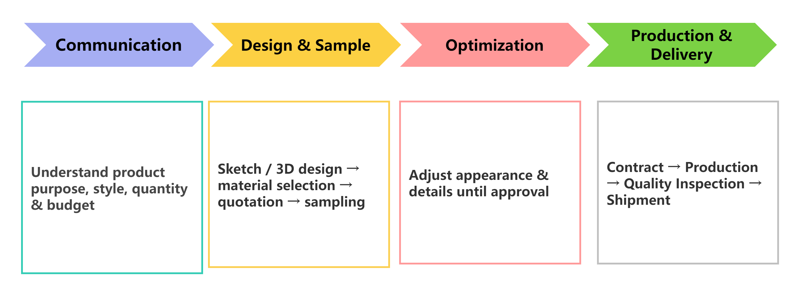 Ce guide vous offre une vue d'ensemble claire du fonctionnement de la coopération OEM/ODM, de la conception du produit à sa livraison, afin que vous puissiez démarrer votre projet en toute confiance.