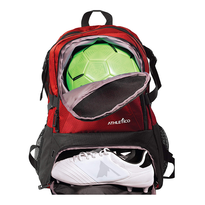 Compartiment à crampons séparé : le compartiment inférieur est ventilé pour transporter vos crampons ou chaussures et éviter les mauvaises odeurs. Lorsqu'il n'est pas utilisé, il est également assez grand pour accueillir un deuxième ballon de football.