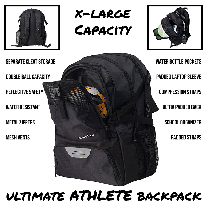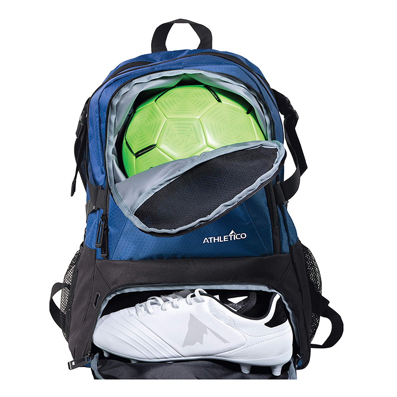 Grand compartiment à ballons ventilé - Le compartiment à ballons avant est parfait pour transporter un ballon de football, de volley-ball, de basket-ball ou de football