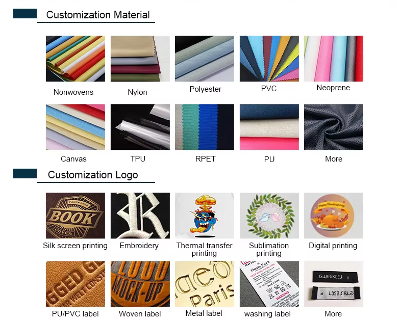Options de matériaux respectueux de l'environnement : RPET, coton biologique et nylon recyclé disponibles.