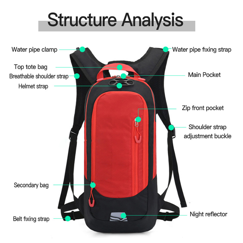Zaino per bere ideale e durevole per le attività all'aperto: questo zaino da ciclismo impermeabile di alta qualità, realizzato con tessuto di nylon resistente agli strappi. Soddisfa la tua richiesta di riporre e bere durante il breve viaggio per ciclismo, mountain bike, jogging, corsa, mtb, sci, escursionismo e arrampicata. Può essere il tuo compagno fedele e versatile per la tua esperienza sportiva.