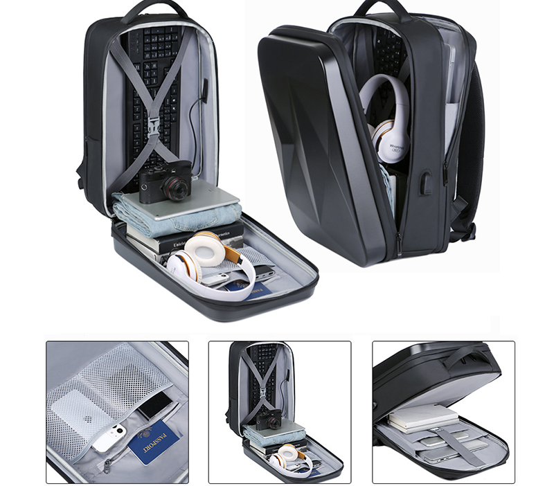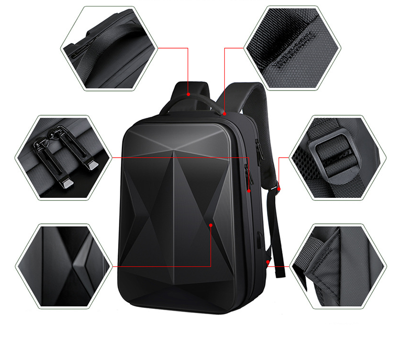 소재 및 기능 사용자 정의: 색상과 패턴 외에도 백팩의 소재와 기능도 필요에 따라 사용자 정의할 수 있습니다. 하드 셸에 다양한 소재(고강도 폴리카보네이트, ABS 등)를 선택할 수 있으며, 추가 기능 구획, USB 충전 포트, 비밀번호 잠금 장치 등과 같은 실용적인 기능을 추가할 수 있습니다.