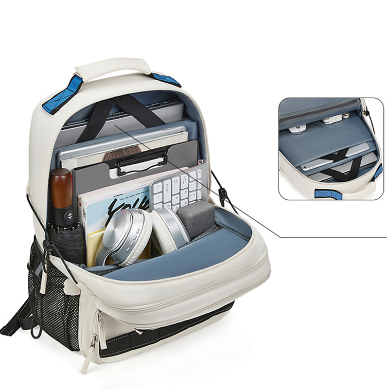 For modern urbanites, it is common to carry all kinds of equipment when traveling. In order to meet this demand, this knapsack adopts a large-capacity design with spacious interior space, which can easily accommodate laptops, tablets, books, clothes and personal items. This design is not only suitable for daily commuting, but also shows excellent storage capacity during travel. The various storage compartments maximize the use of the internal space, and some exclusive electronic product compartments provide additional protection to protect your devices from impact and scratches during travel. The multi-layer structure design is a highlight of this backpack. The multi-level configuration not only optimizes the storage method of items in the backpack, but also provides users with a refined life experience. The main compartment is suitable for placing large items, while the secondary compartment design of different sizes is convenient for storing small items such as stationery, keys, and chargers. The specially designed zipper pockets and side pockets are suitable for storing items that need to be quickly accessed, such as water bottles and umbrellas, ensuring that you can quickly find the right items when you need them, improving the overall convenience of use.